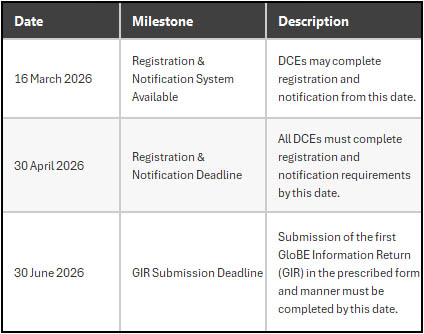 The GloBE Rules apply to MNE Groups whose consolidated annual revenues equal or exceed EUR 750 million in at least two of the tax years immediately preceding the reporting fiscal year. GMT deadlinesThe local legislation governing GMT is deemed to have come into operation on 1 January 2024 and applies to MNEs’ subsequent “fiscal years”. Here are the deadline dates as published by SARS.